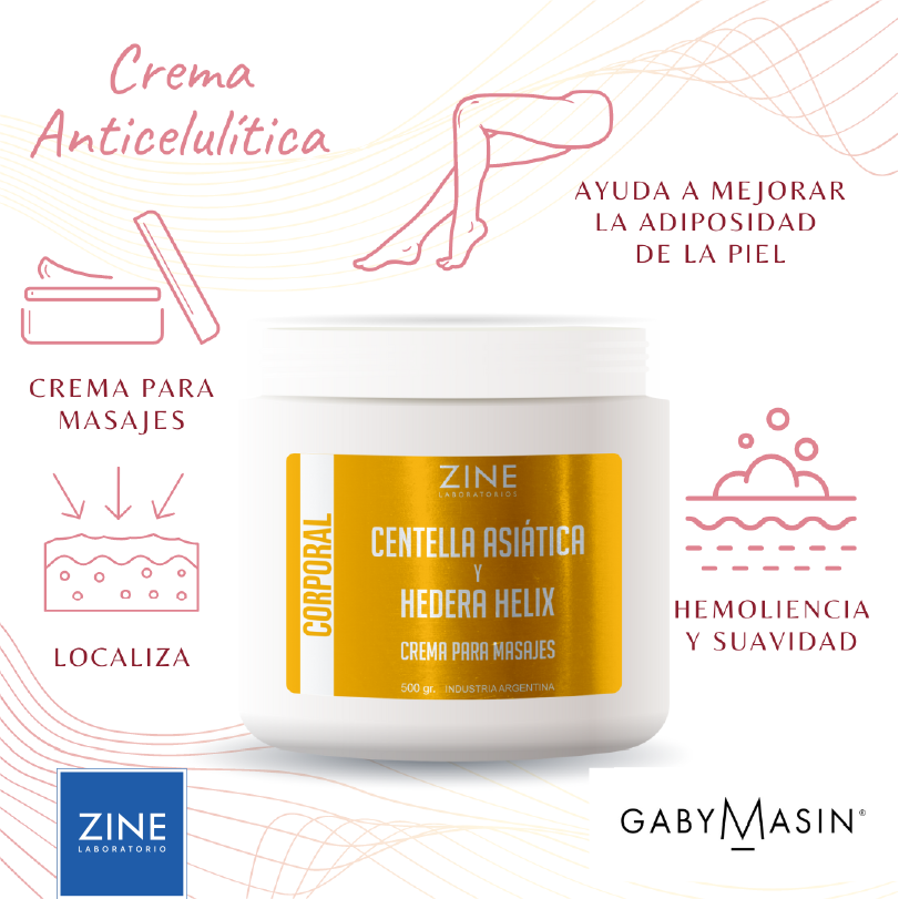 Crema para masajes corporales, con centella asiática y hedera hélix, que ayudana a combatir la celulitis, dejando la piel con gran emoliencia y suavidad, favoreciendo la circulación.